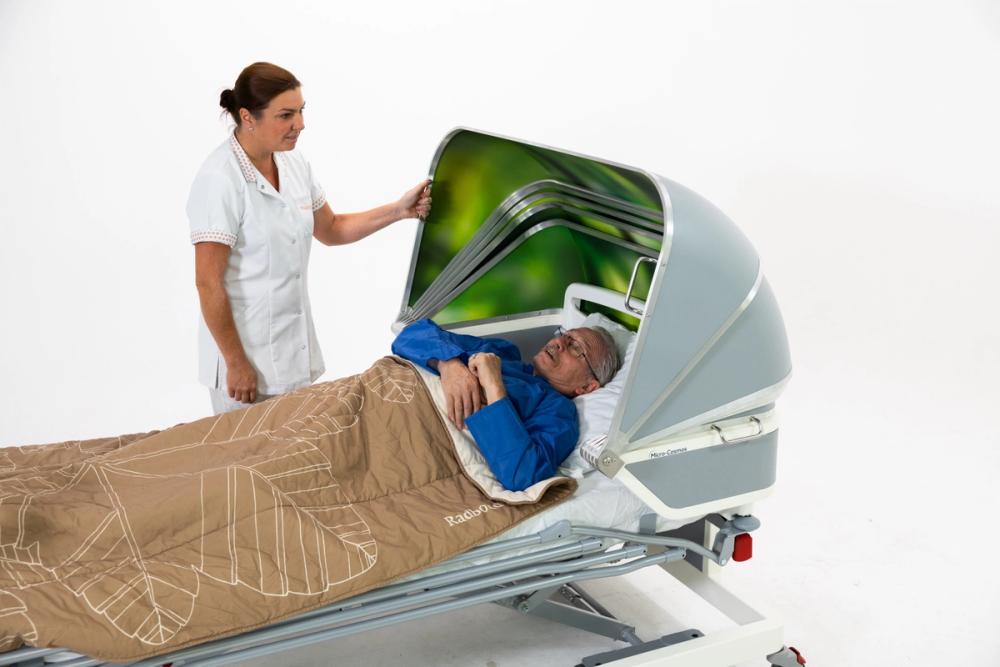 De Micro-Cosmos is een bedkap die een prikkelarme en een geborgen slaapomgeving creëert, waardoor de slaapkwaliteit van de bewoner mogelijk verbeterd kan worden. De Micro-Cosmos is getest en positief bevonden in de ziekenhuiswereld.